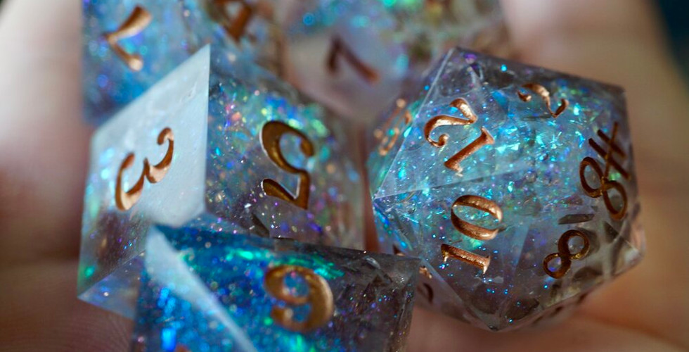 Gabriela is the handcrafter of these exquisite dice and owner of the Tender's Shop where she sells her polyhedral magical creations (you guys can also find her on Instagram as @tendersworkshop). Her creations have a vast range of hues and some of them contain intricate details within them perfect for every taste.